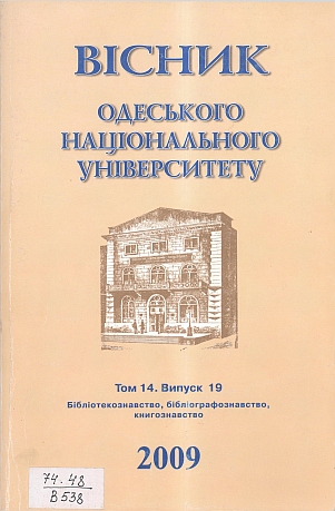 Вісник Одеського національного університету. Бібліотекознавство, бібліографознавство, книгознавство